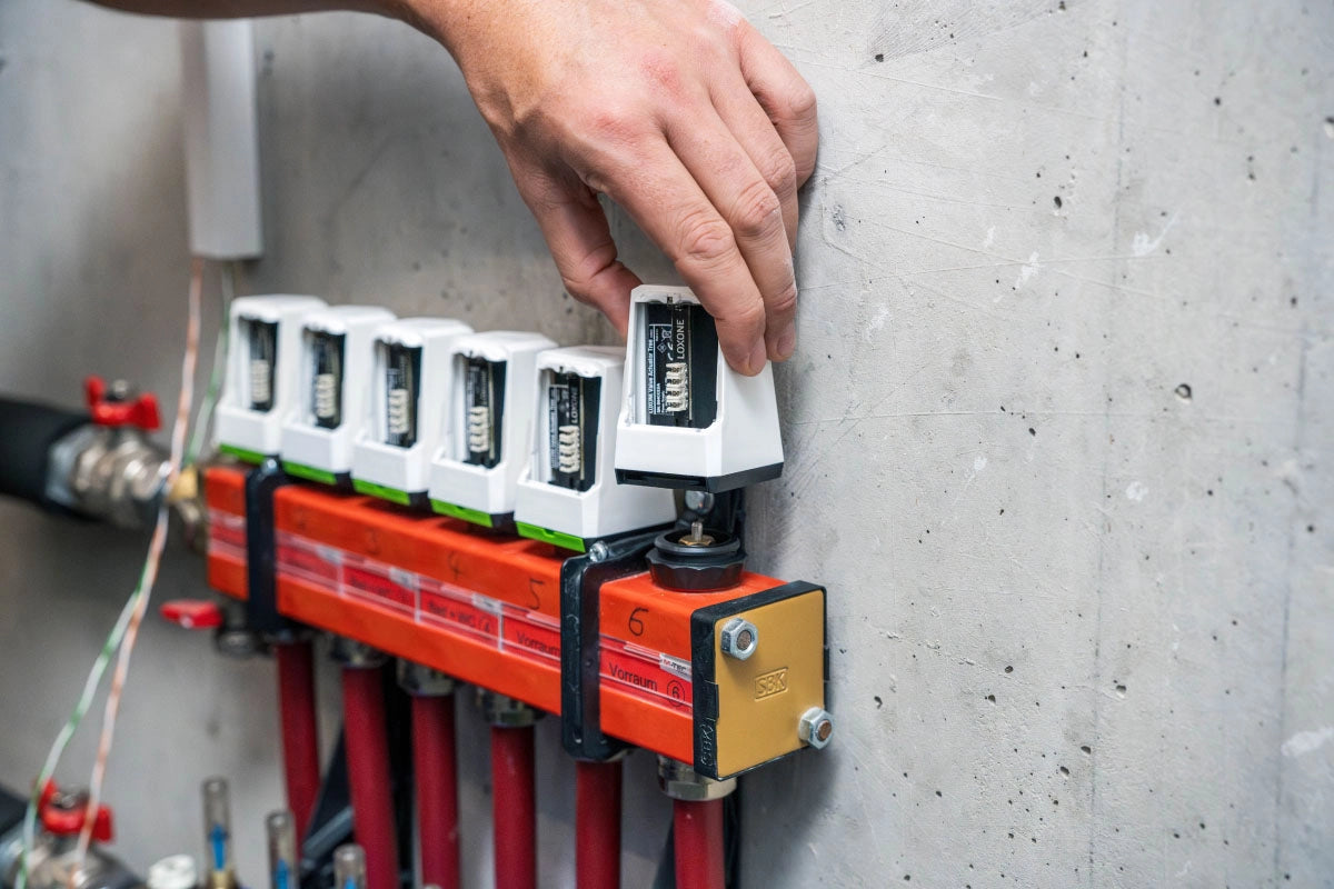 Der Loxone Stellantrieb Tree ist ein motorischer Stellantrieb. Durch gängige Adapterringe ist er an zahlreichen Ventilen verwendbar, welche typischerweise bei Fußbodenheizungen und Heizkörpern zum Einsatz kommen.