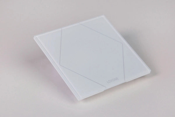 Der Loxone Touch Pure CO2 Tree verfügt über fünf Tastpunkte auf einer Glasfront, zur Bedienung der wichtigsten Funktionen eines Raumes. Bei Berührung einer Taste erfolgt ein Klicken als akustische Bestätigung. Zur Messung von Temperatur, relativer Luftfeuchte und CO2 Wert ist ein Sensor integriert. Ein Orientierungslicht ermöglicht das Erkennen des Gerätes im Dunkeln.